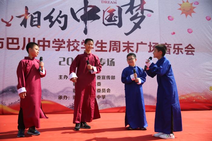 “巴川中學(xué)學(xué)生周末廣場(chǎng)音樂(lè)會(huì)”迄今已堅(jiān)持舉辦九年,成功演出過(guò)165場(chǎng),演出節(jié)目共2300余個(gè),演出學(xué)生達(dá)10000余人次,深受學(xué)生、家長(zhǎng)、市民的歡迎和社會(huì)各界的一致好評(píng)。?一次兩次較容易,周周堅(jiān)持不簡(jiǎn)單,師生們?yōu)榇烁冻隽撕芏啵彩斋@了很多,收獲的不僅僅是個(gè)性的彰顯,不僅僅是情操的陶冶和素養(yǎng)的提升,更重要的是為孩子們播下了服務(wù)社會(huì)的種子,從而肩負(fù)起一份社會(huì)責(zé)任和使命。