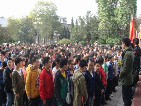 3月24日上午,2014級(jí)700余名師生在胡大孝、余富強(qiáng)等領(lǐng)導(dǎo)的組織帶領(lǐng)下參觀了邱少云烈士紀(jì)念館。通過(guò)“聽(tīng)講解員的解說(shuō)、觀看英雄事跡短片、收集感人故事、歌唱愛(ài)國(guó)歌曲、在紀(jì)念碑前莊嚴(yán)宣誓”的活動(dòng),全體師生了解了邱少云烈士一生的光輝事跡,被他的集體主義、嚴(yán)守紀(jì)律的頑強(qiáng)意志和高度的自我犧牲精神深深震撼,同學(xué)們?yōu)榇肆?zhēng)做同齡人的守紀(jì)楷模。同時(shí)溫暖的陽(yáng)光、飄揚(yáng)的紅旗、愉快的歡笑也豐富了精神文化,讓周末留校更有意義。