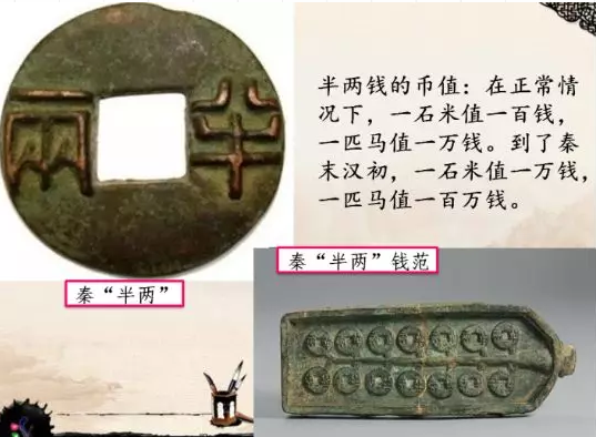所以秦朝完成國家統一之后,貨幣統一也就被提上了日程,秦始皇以秦國貨幣為范本,規定圓形方孔“半兩”錢作為全國統一貨幣。