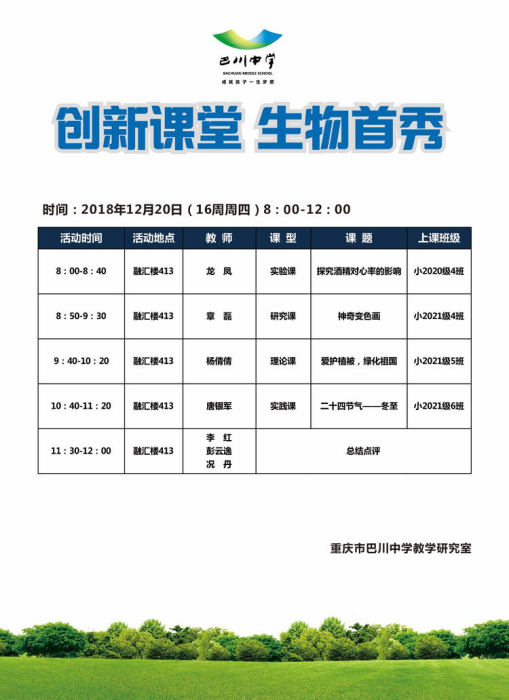 2018年12月20日,在冬至到來之際,我校銅梁校區(qū)、潼南校區(qū)、巴川量子中學(xué)的所有生物老師齊聚銅梁,參加由教學(xué)研究室組織的首屆“生物好課”活動。