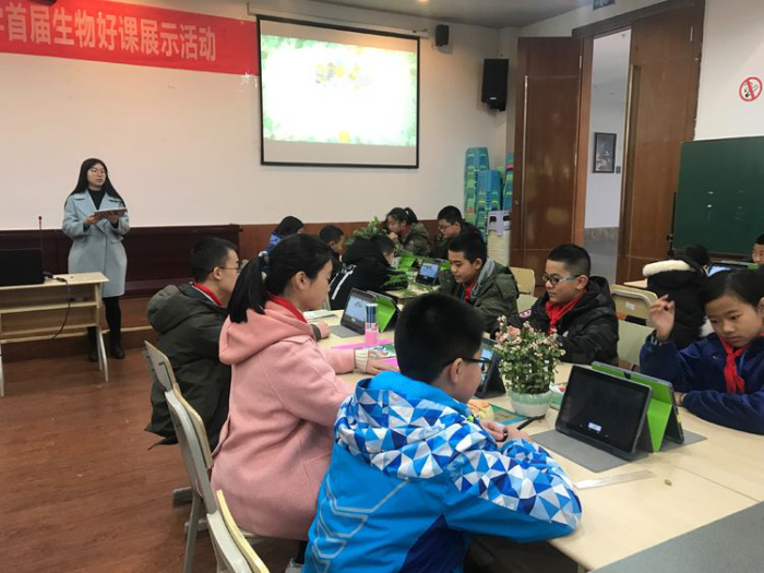 第三堂是巴川小班的楊倩倩老師帶來的《保護(hù)植被 綠化祖國》,該課主要是學(xué)生通過平板電腦完成問卷調(diào)查、知識檢索、問題搶答等環(huán)節(jié),是信息技術(shù)與課堂的高度融合,讓信息技術(shù)服務(wù)于課堂,提高課堂的效率,讓不同層次的學(xué)生通過網(wǎng)絡(luò)檢索自己需要的知識,使用“形色”app,查找資料,教會學(xué)生如何學(xué)習(xí),如何解決生活中的問題,這就是未來教育的趨勢。