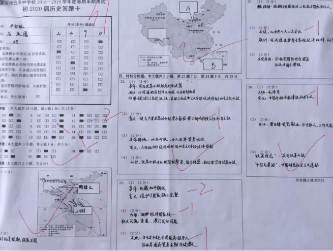 其實,這部分秘笈就是學校教務處前不久組織的2019年春期半期考試優秀答題卷展評評選出來的規范答題卡。在經過了班級、年級初評和學科組長們的復評之后,最終選出了這些答題卡在博雅樓大廳進行展示。下學期開學,學校還會在開學典禮上對這些規范答題卡的主人們進行全校表彰。