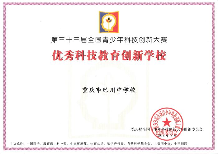 第三十三屆全國青少年科技創(chuàng)新大賽? 優(yōu)秀科技教育創(chuàng)新學校