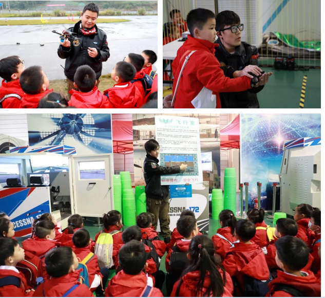 帶著新鮮的問題與思考,孩子們走近了航空科普基地:觀看無人機(jī)花式飛行表演,用驚嘆與尖叫聲點(diǎn)贊;在航空大課堂,了解從古至今的航空發(fā)展史;在模擬的A320機(jī)艙,了解客艙安全知識(shí);在飛網(wǎng)區(qū)域,操作無人機(jī)定點(diǎn)飛行、降落;體驗(yàn)RC競(jìng)技的魅力,和同學(xué)們來一場(chǎng)追逐比賽;學(xué)習(xí)指揮手勢(shì),了解塔臺(tái)與機(jī)師的溝通話術(shù)……