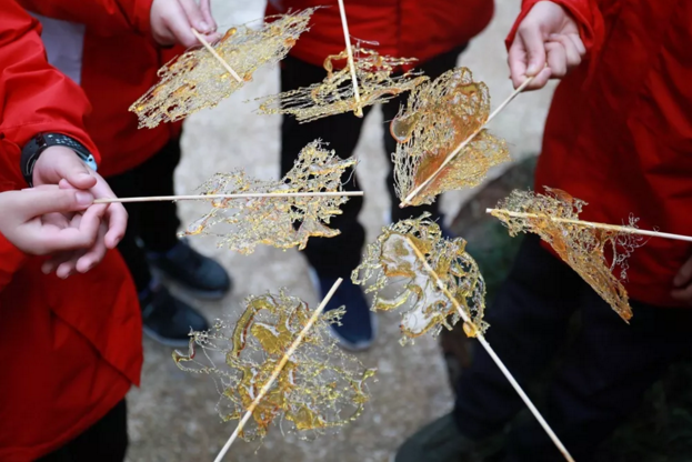 “動(dòng)作要快,慢了糖就凝固了。”“手抬高點(diǎn)才能拉出糖絲,糖絲越細(xì)越好吃。”實(shí)踐出真知,小手藝人們?cè)诓粩嗟木毩?xí)中,總結(jié)出了自己的“糖畫制作秘籍”!在行走中,學(xué)習(xí)、實(shí)踐、總結(jié)、分享,將經(jīng)歷制作成手抄小報(bào),知識(shí)的習(xí)得開心甜蜜且自然而然。