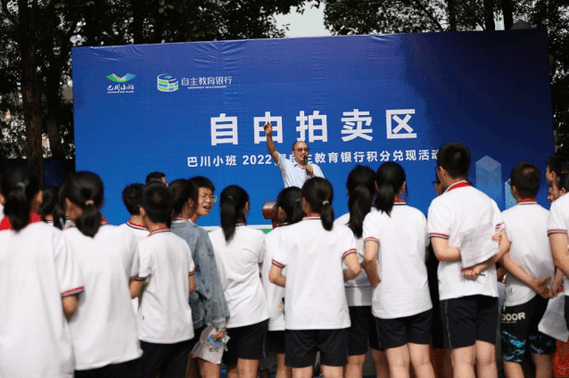 “下一件拍品為40色馬克筆套裝。”“600分、700分、800分……”“好的,1200分第二次、1200分第三次!成交!”什么時候?qū)W校里有了拍賣會?不,這其實是5月22日下午,巴川小班2022屆自主教育銀行積分兌現(xiàn)活動中的一個場景。