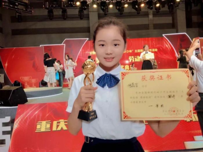 近日,教育部關工委“新時代好少年”主題教育讀書活動“美好生活勞動創(chuàng)造”演講、朗誦比賽全國展示活動落下帷幕,重慶市銅梁區(qū)4名學生榮獲國家級獎項,2人獲一等獎,2人獲二等獎。其中,巴川小班2022屆9班的何蕊言同學就奪得了初中組演講比賽國家級一等獎。