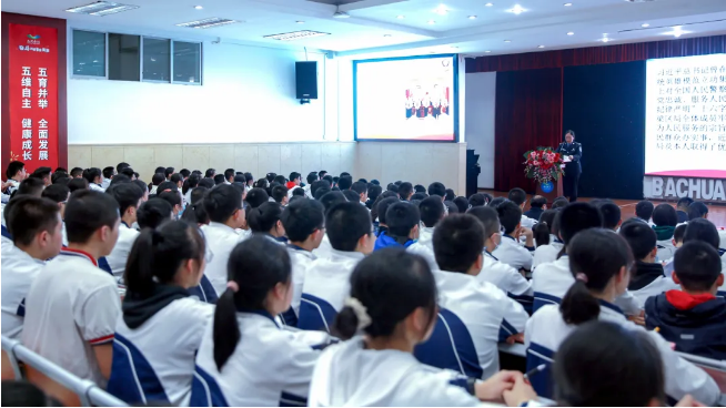 隨后,全國先進工作者、全國公安二級英模、重慶市銅梁區公安局刑事偵查支隊三大隊大隊長楊發英警官來到臺前,在接過學校為她頒發的“巴川小班榮譽講師”聘書之后,楊警官為孩子們帶來一場關于卓絕奮斗、青春綻放的勵志講座。