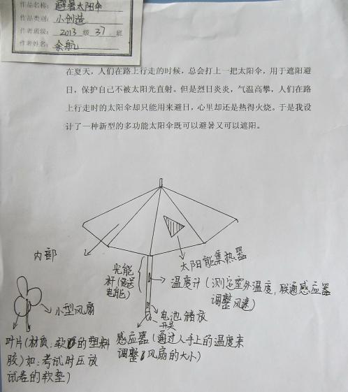 簡要介紹: ????巴川中學2013級37班學生 作品名稱:避暑太陽傘