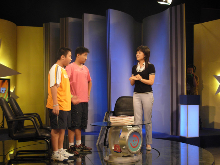????? 也許是向往央視的興奮,也許是從未乘過火車的新奇,也許是結交新朋的忘形,一向健談,喜交朋友的我因童心未泯,說話太多,睡覺太晚在不知不覺中犯下賽前大忌——把聲音給丟失了。一到北京,我的聲音開始嘶啞。楊老師急得如熱鍋上的螞蟻,不得不把我當“熊貓”保護——不喝辛,不吃辣,每天不過10句話。還別說,這種處境讓我學到了打啞語的本事。初賽,雖然聲音嘶啞改變不大,但憑借節目的整體質量高,順利通過。