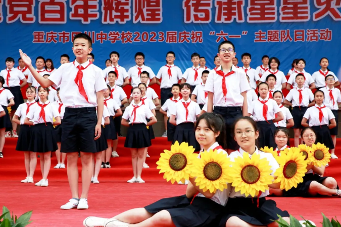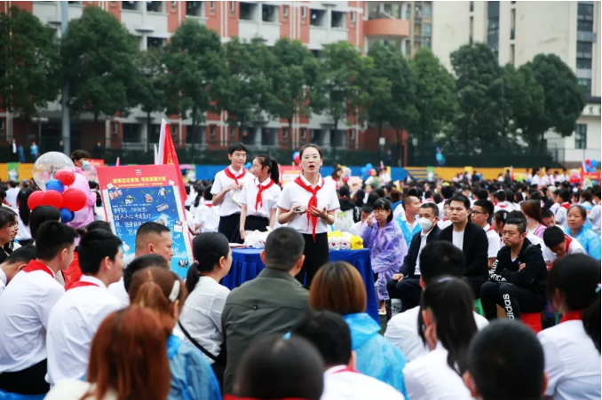 少先隊旗迎風招展,巴川學子呼號震天
