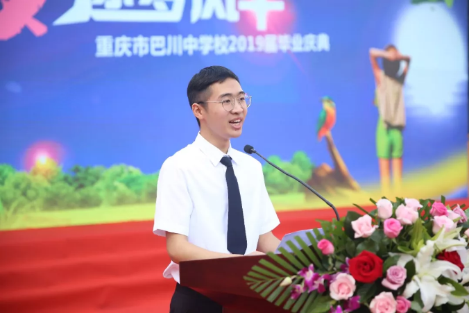 “我是巴川中學初2016屆、巴川新高中2019屆的畢業生孫楠斌。”當今年以全市前十名的高分考入北京大學的優秀學長孫楠斌來到現場,參加初2019屆的畢業典禮時,全場響起了熱烈的掌聲。