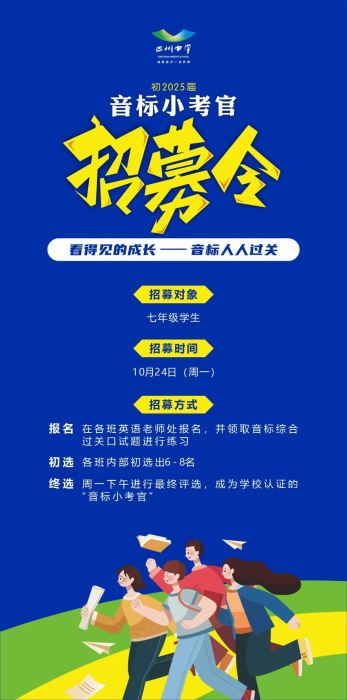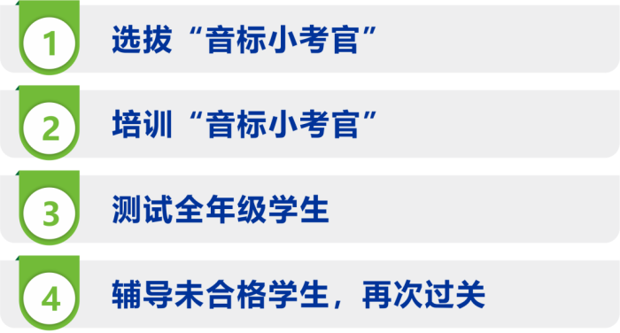 全年級動員同學們自愿報名“音標小考官”,自主準備音標面試。首先通過各班內部初選,參加由年級組織的面試,遴選出語音能力強的同學,再通過“小考官”統一培訓,最終162位同學獲得“音標小考官”資格并領到了“考官證”,才可以正式出道!
