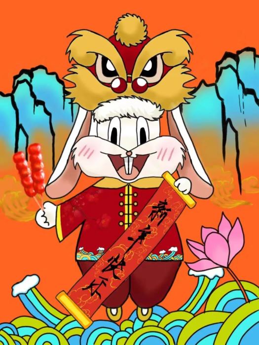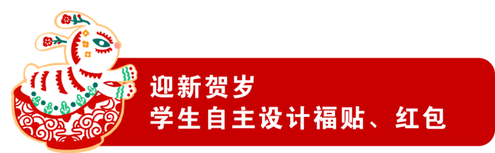 初2023屆鵬1班唐詩棋同學的兔子形象就有很多自己的獨特審美,甚至給人一種滑稽搞怪的感覺,盡管也是頭戴醒獅帽,身著對襟衣,手拿春聯(lián),但兔子的形象卻和傳統(tǒng)的中國審美有些不合拍,在和指導老師溝通后,最終呈現(xiàn)的是一只更加擬人化的、快樂調(diào)皮的小白兔形象,強化Q版的造型看起來更加呆萌可愛。由它裝點的福貼和紅包一經(jīng)面世,便受到老師和同學們的熱烈追捧,可見大家更喜愛兔子可可愛愛的固有形象。