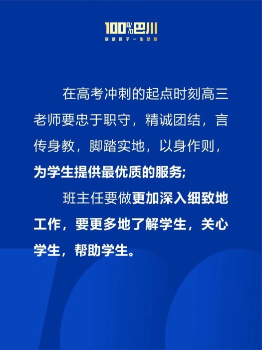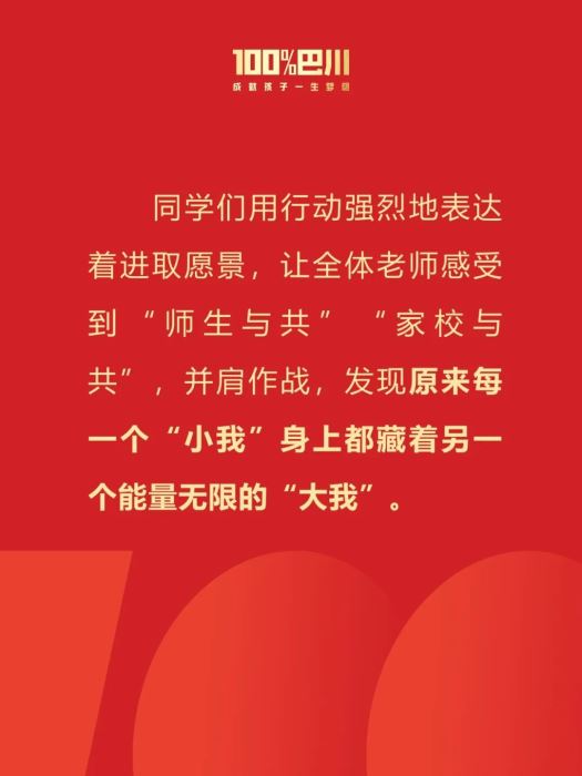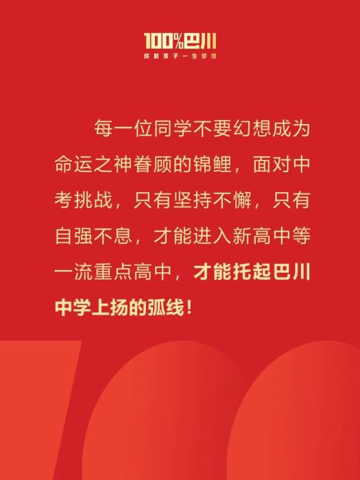上一條信息: 中考動員大會 | 奮楫勇進一百天,獻禮巴川下一條信息:巴川“她”力量,與青春同行,展最美芳華