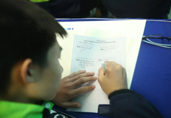上周,STEAM創(chuàng)新教育學(xué)部首屆數(shù)理奇思挑戰(zhàn)賽在階梯教室舉行。初一年級(jí)8個(gè)班級(jí)代表隊(duì)面對(duì)有理數(shù)的混合運(yùn)算、整式加減、一元一次方程、思維挑戰(zhàn)題等數(shù)理知識(shí)競(jìng)賽題目,開足馬力轉(zhuǎn)動(dòng)思維,為了首屆賽事的桂冠拼盡全力。
