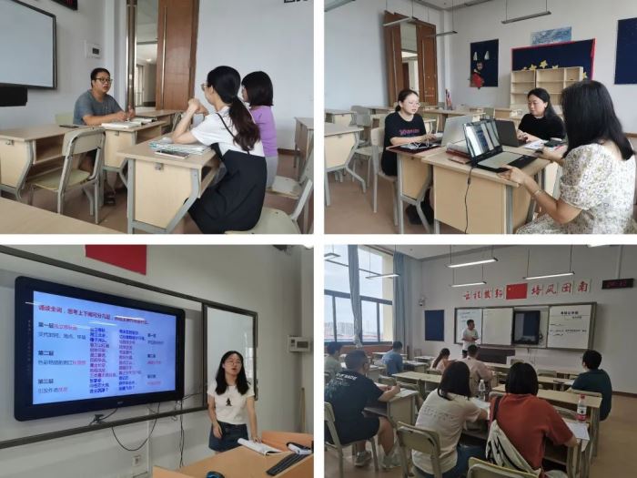 語文組在譚栩老師的帶領下,開展了“開學第一堂語文課”研討行動,新進教師王丹、邵子照、張義杰等依次上臺展示“開學第一課”設計思路;數學組在何徐老師帶領下開展了“提前一周備課活動”,組內所有老師一一亮相,依次上臺說課并試講;英語組大組長袁鳳、組長丁聰帶領老師們討論并擬定學科工作計劃;物理組組長陳曉娟帶領老師們對教材進行了獨特而深度的解讀;化學組、政治組、歷史組、地理組等老師都帶上筆記本電腦現場議課、備課……活動從8點半一直持續到11點多,現場研討氣氛熱烈,教研活動有板有眼,形成了豐厚的教研成果。