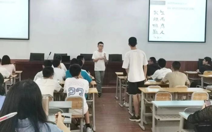 當天下午,高一年級舉行了“開學第一課”現場展示課。譚栩老師從典故引出學生“自我介紹”以及師生間的第一次碰撞,接著從“什么是語文”“為什么學語文”“高中語文學什么”“怎么學語文”等四個方面引導學生對語文學科進行了全面而深入的探尋。
