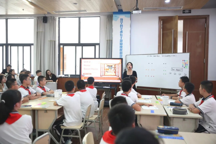 同一天下午,同一間教室,初中英語教師袁夢的課堂則充滿了活力。圍繞“U2 Home Sweet Home”主題,袁老師通過游戲與情景任務,將詞匯學習融入真實語境。使課堂超越語言學習,成為一次情感與文化熏陶。隨后,巴川清北教學部教研組長程小芳老師深入點評,闡釋了如何讓詞匯教學實現“詞‘境’其意”。