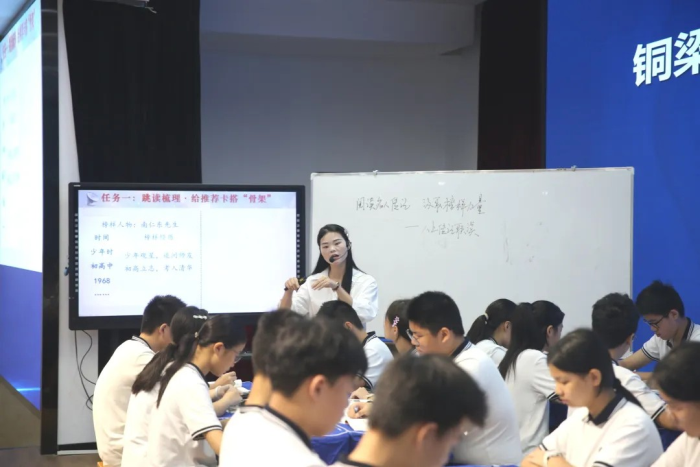 而在學術報告廳,初中語文教師李惠萍的《閱讀名人傳記·汲取榜樣力量》聯讀課,則以“制作人物推薦卡”為任務驅動,將兩篇傳記有機整合,展現了“大單元教學”的迷人魅力。讓學生在真實情境中運用語言、錘煉思維、涵養品格。